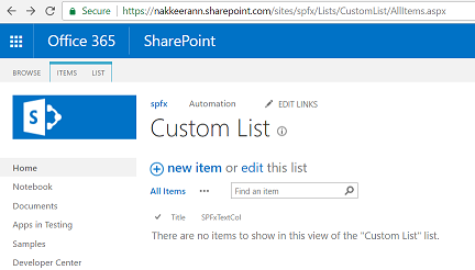 In the previous sample, I have explained the steps to create a basic SharePoint custom list with feature mapping, using SharePoint framework solution. In this sample, let us look at how the list will be created with custom schema. The schema can contain the additional content types or fields.