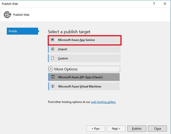 Click Microsoft Azure App Service.