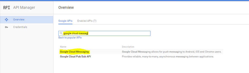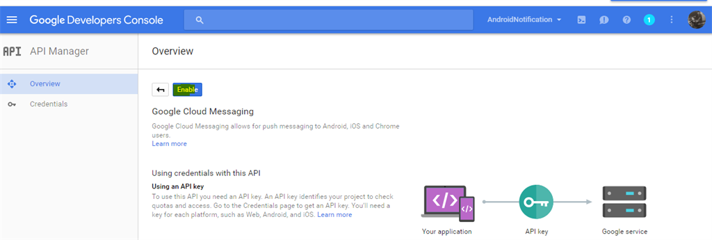 Click the Google Cloud Messaging for Android, iOS and Chrome and enable it.