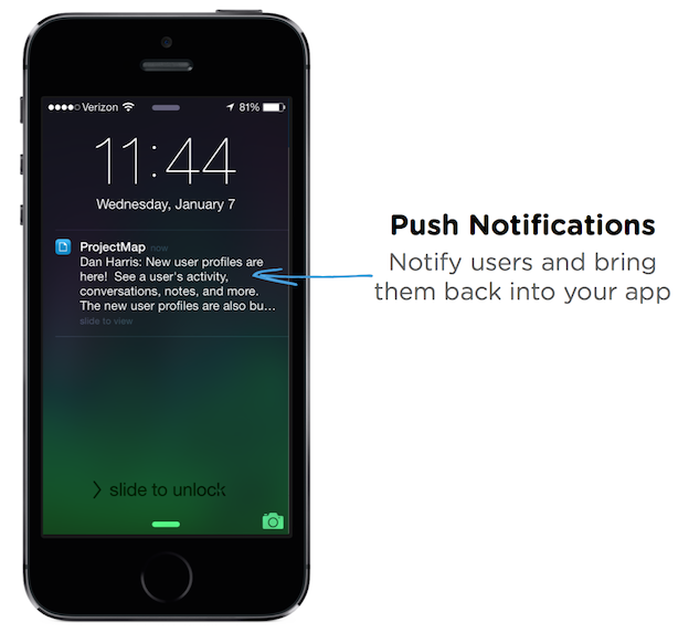 Push notification, also called server push notification, is the delivery of information from a software application to a computing device like Mobile(Android,Iphone,Windows,etc),Tablet,etc without a specific request from the client.
