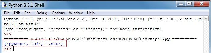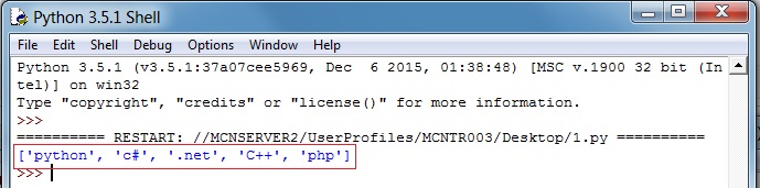 Question 11: What is the output of print(list) if list=["python","c#",".net"] ?