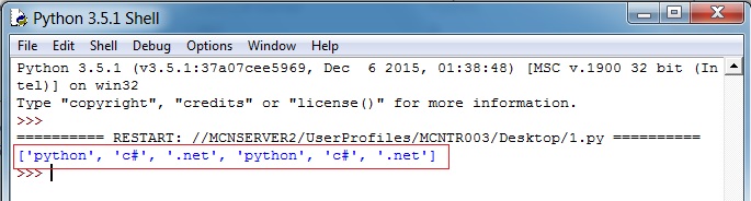 Question 15: What is the output of print(list*2) if list=["python","c#",".net"] ?