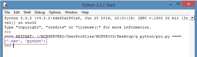 Question 12: What is the output of print(list[0]) if list=["python","c#",".net"] ?