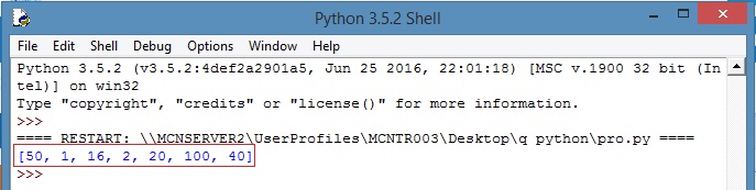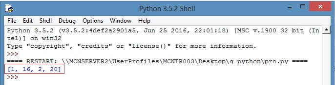 This problem uses a slicing operator, where a starting index is 1 and ending index is 2.