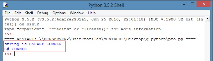 Question 5: What is the output of print(str) if str="C#Corner"?