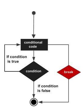 Break statement is used to terminate the current loop and resumes execution at the next statement.