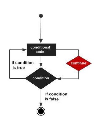Continue statement is used to reject all the remaining statements in the current iteration of the loop and moves the control back to the top of the loop.