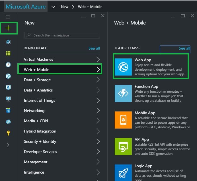 Step 2: In the Jump bar, click New, then click Web + Mobile, and then Web App.