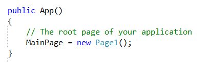 - Open App.cs file in Sample 1(Portable) projec, remove the code in App () creator and create an object forthe newly added page.