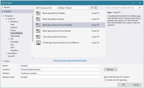 File -> New Project -> Visual C# -> Cross-Platform -> Blank App (Xamarin. Forms Portable)