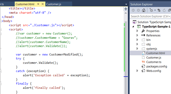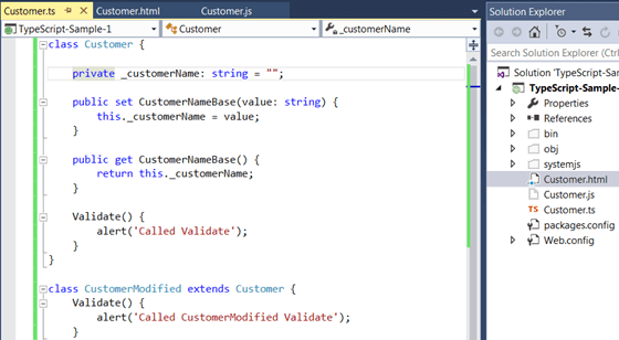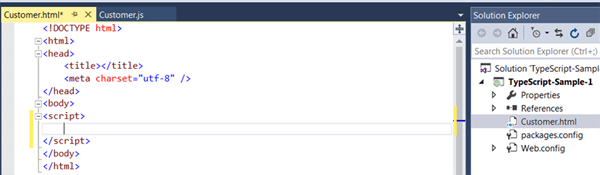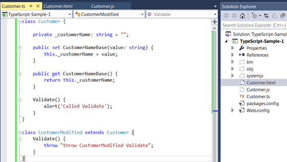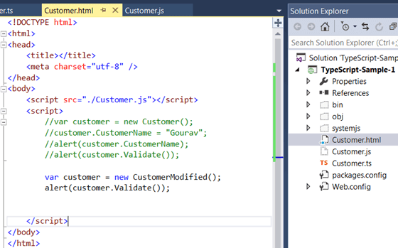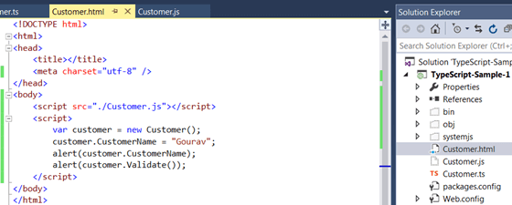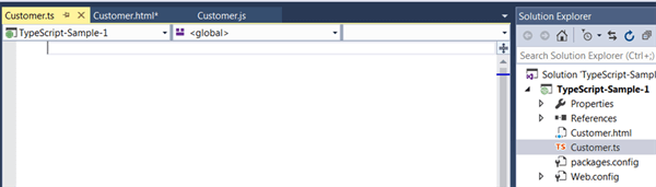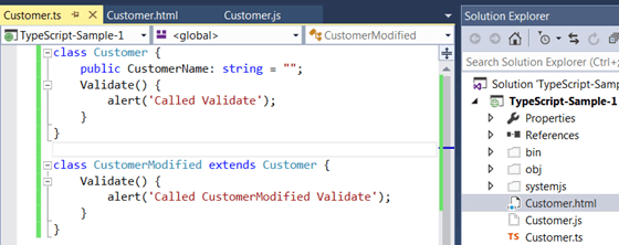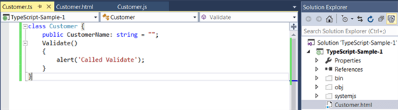— Create a class named as Customer and save the file. We can see the auto-generated Customer.js file in VS.