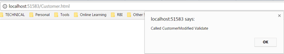— Run the application. There, we can get alert of the extended class ‘Called CustomerModified Validate’.