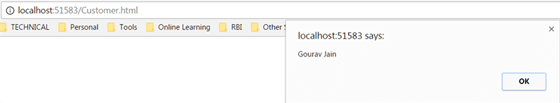 — Run the application. There, we can see a couple of alerts of ‘Gourav’ and ‘Called Validate’.