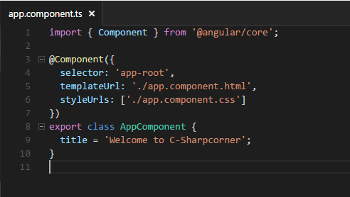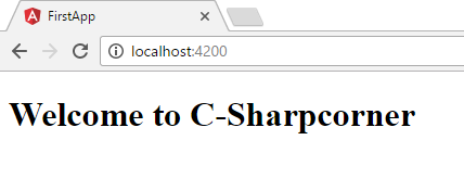 Here, I made a change in app.component.ts code. Since I need an output as "Welcome to C-Sharpcorner". I made changes in AppComponent class with the name as "Welcome to C-Sharpcorner".