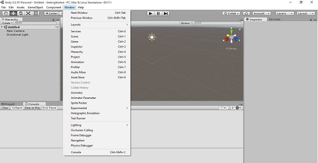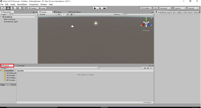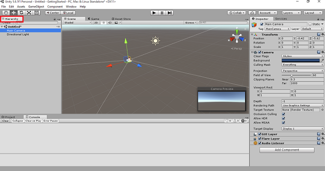 We have two options in Hierarchy View. Main camera helps us to show the object in your Scene. Directional light is also used in this View.