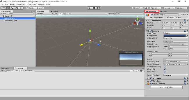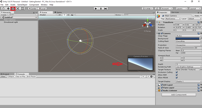 Main camera is to capture the object that moves in the Scene View.Usually, it will be displayed in Camera Preview.