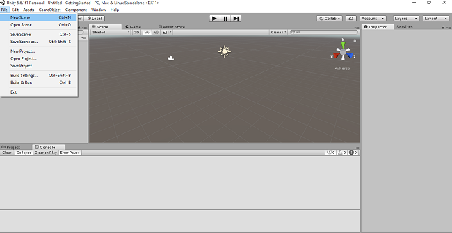 In this menu, we have New Scene, Open Scene, Save and Save as the Scene, New and Open Project. New scene creates the scene in your game.