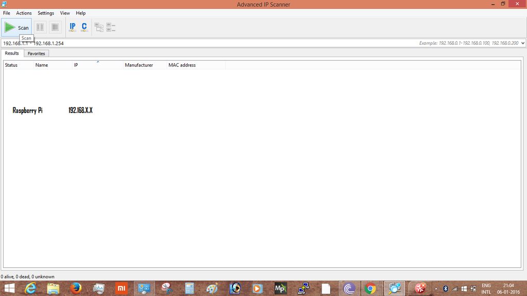 - Type the IP address of Raspberry Pi found out from the IP scanner in the previous step.