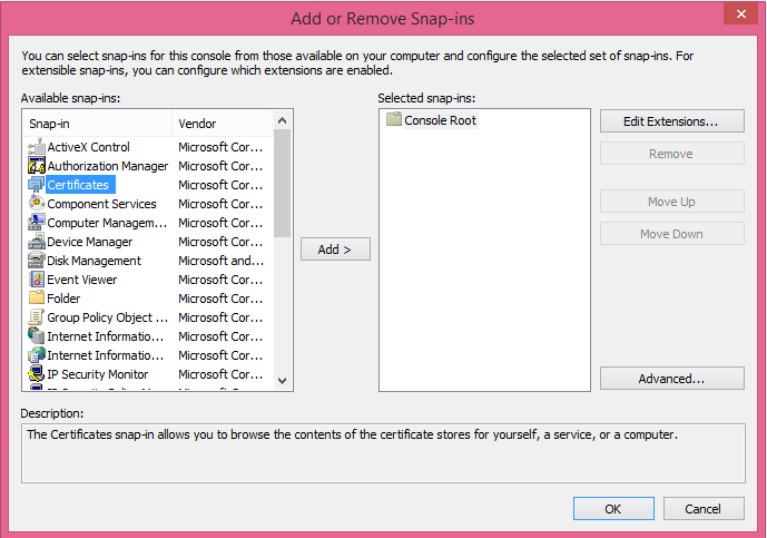 First of all, we will check our certificate by using a command called "MMC" like this.