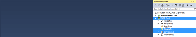 Two files, IService1.cs and Service1.svc, will be added under the project in Solution Explorer.