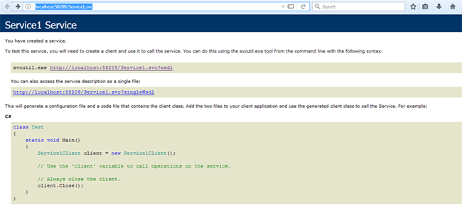 You will get a service link like this : http://localhost:58209/Service1.svc.