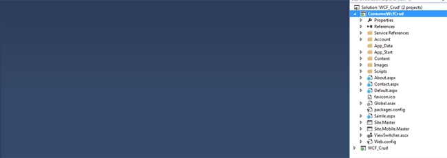 Create your ASP.NET application named "ConsumeWcfCrud" and consume the preceding new WCF service.