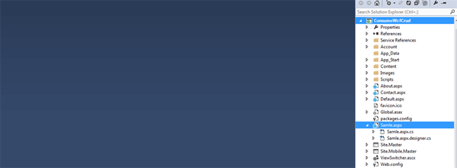 Then, in WEB.CONFIG file, add connection string and check some system generated codes.