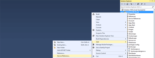 To consume/call the WCF Service and its methods, we need to add the service reference. For that, go to Solution Explorer, right click
