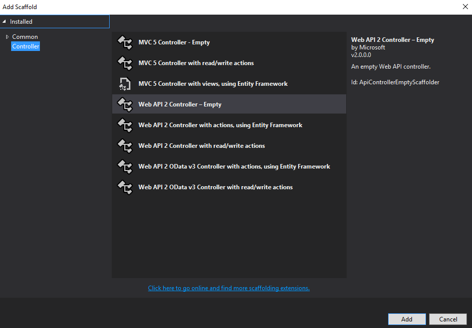Right click on the Controller folder and add a new WEB API 2- Empty controller as in the following figure 3, in my case I named it EmployeeDetailsController.cs: