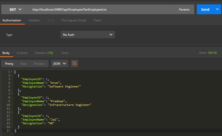 Test the API using the POSTMAN/Fiddler as in the following figure 4:
