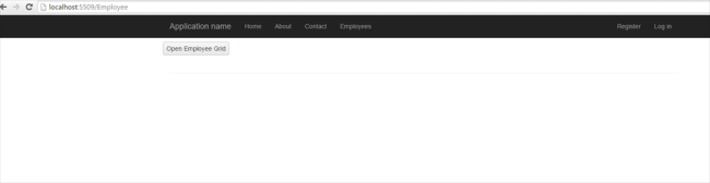 In this view, we have the button and the kendo window which is not visible initially. When the button click happens, the kendo window will open with the content of employee records in kendo grid.