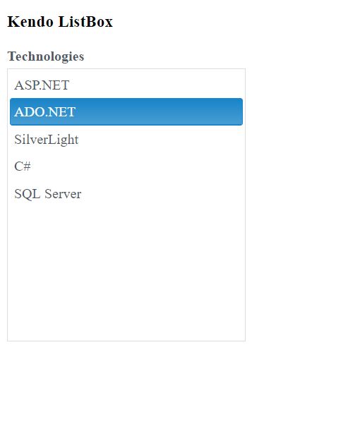 From the code given above, it is obvious that we have constructed a datasource for the Kendo ListBox using our API, http://github-ci-staging.azurewebsites.net/api/Technologies/TechnologiesList