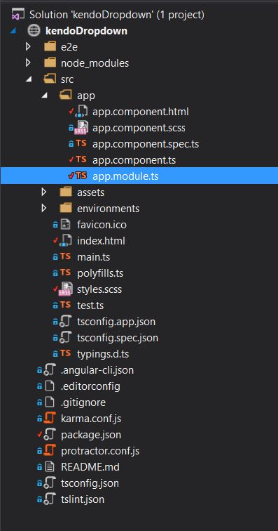 Open app.module.ts file and add the information of Kendo dropdowns, which are installed.