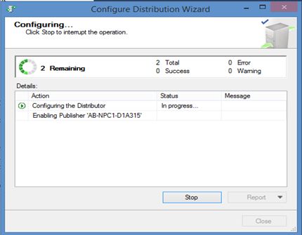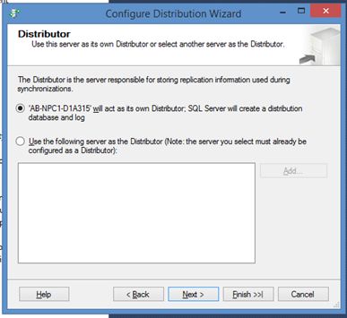Here, in this case using everything in local Server. Hence the checkbox is checked. Click Next and check Configure distribution Option -> Finish.