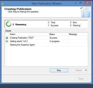 Use SQL server Authentication.>OK -> Next ->Create publication ->Give publication name as “”TEST” -> Finish.