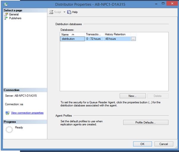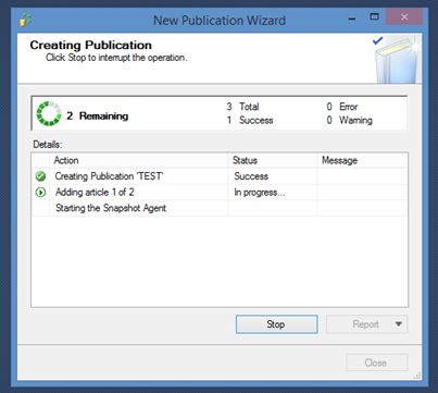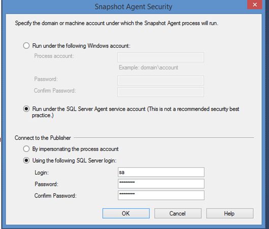 Use SQL server Authentication.>OK -> Next ->Create publication ->Give publication name as “”TEST” -> Finish.