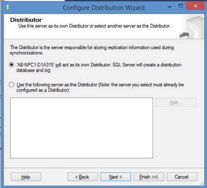 Here, in this case using everything in local Server. Hence the checkbox is checked. Click Next and check Configure distribution Option -> Finish.