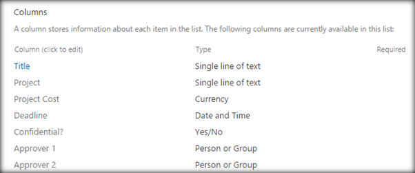 Within the List, create the columns, mentioned below. Ensure ‘Confidential?’ column is created.