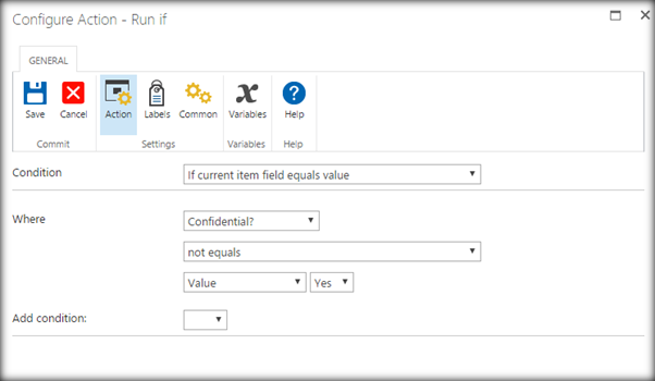 In our case, if the List Item Column Value for ‘Confidential ?’ is not equal to ‘Yes’, we will be inheriting Permissions from the parent.