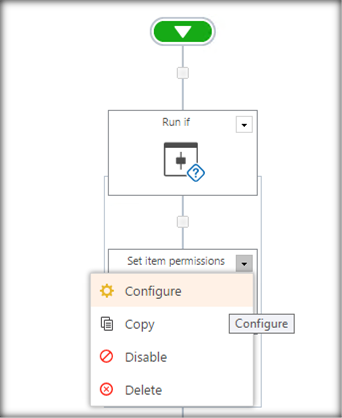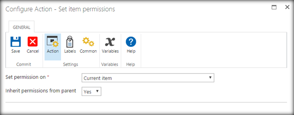Add the new action ‘Set item permissions’ that will run, if the above conditions turns True.