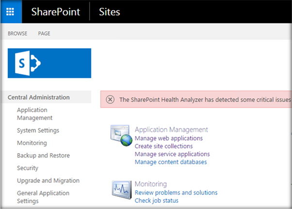 Let’s head over to the SharePoint Central Administration. This time the site has come up.