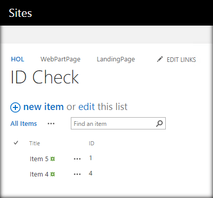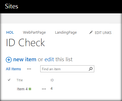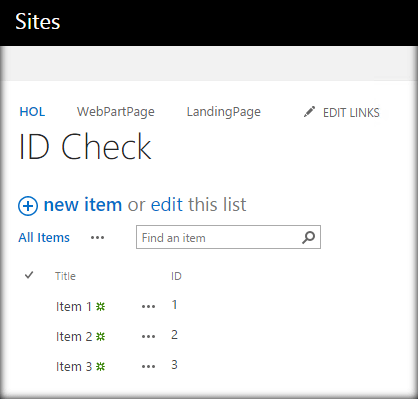 Before getting into the implementation part, let’s see how SharePoint keeps track of the upcoming list item ID. I have created a list, “ID Check”, with the three Items.