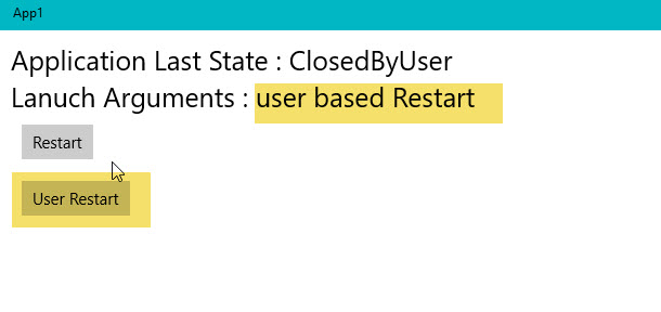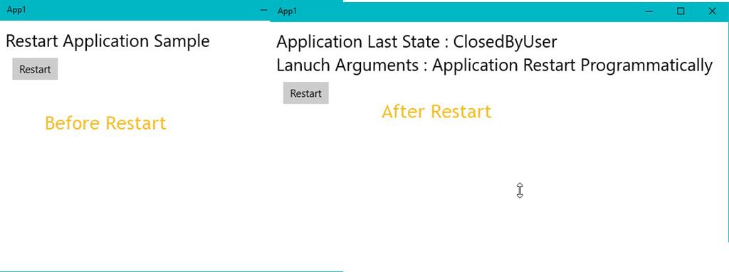 - var result = await CoreApplication.RequestRestartAsync("Application Restart Programmatically ");