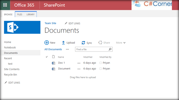 The first stage recycle bin is at the site level. We will see how to work with it first. Say, we have two documents in the Shared Documents Library.