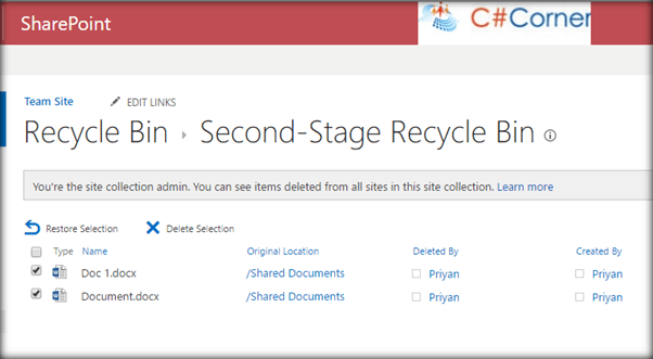 SharePoint Online, by design, provides a mechanism by which when a document is deleted. It goes to a Recycle Bin from where we can restore the document. It acts just like the Windows Recycle Bin we have been using in our desktop. SharePoint has provided two levels of recycle bin to roll back the accidental deletion of documents. Once it is deleted from the Library, it first goes to the Site level recycle bin from where you can restore it. If it is still deleted from there, it goes to the Site Collection Recycle Bin (Also known as Second Stage Recycle Bin).