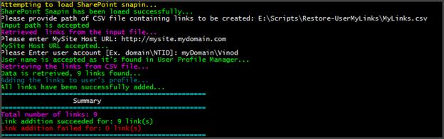 Since I got the links and the user confirmed that those were the links, the final step was to add them back to the User’s profile in User Profile Service Application so that the user’s MySite could show the same.