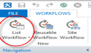 - We have three different Workflows. Select anyone -> List Workflowdrop-down in the New section of the ribbon.