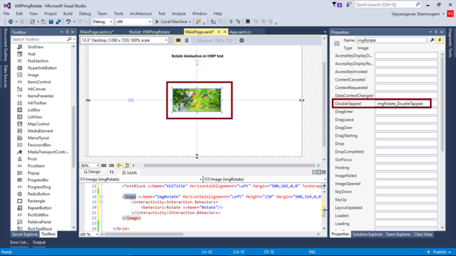 - <Image x:Name="imgRotate" HorizontalAlignment="Left" Height="138" Margin="508,314,0,0" VerticalAlignment="Top" Width="288" Source="Assets/r2.jpg" DoubleTapped="imgRotate_DoubleTapped" ToolTipService.ToolTip="Double Tap this image for Rotate">