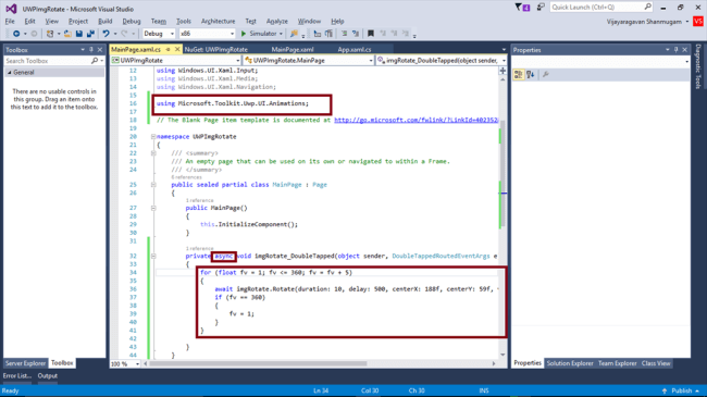 After reading this article, you will learn how to create rotate animation in Universal Windows apps development with UWP Toolkit Animation, XAML and Visual C#.