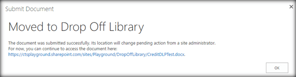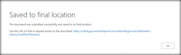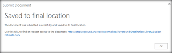 Clicking on "Submit" has triggered the Content Organizer Rule and the document is routed to the Destination Library successfully.
